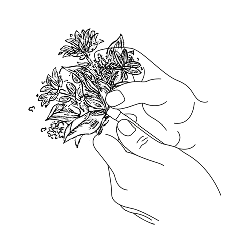 Nos créations sont composées à partir de plantes et de fleurs cueillies, séchées puis fièrement assemblées à la main de manière artisanale, dans le respect total de la nature.